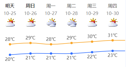27日弱冷空气影响,多云间阴天,气温略降。