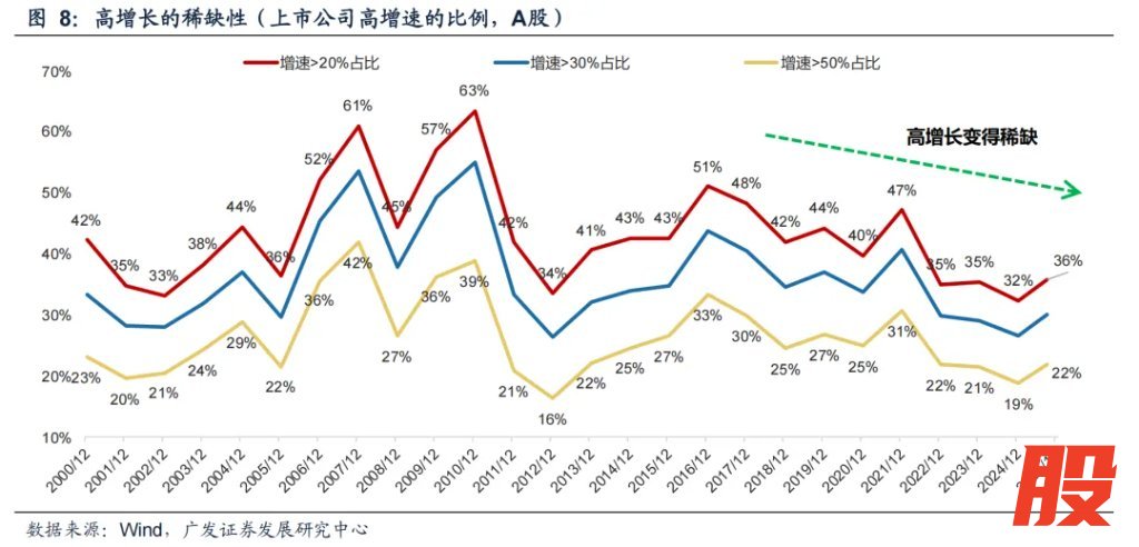 2025年,A股的景气定价更加极致。这背后的定价逻辑,就在于前面所讲的“高增长的稀缺性”,越稀缺、越极致。
