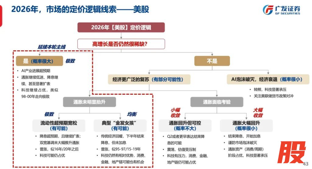 (4)2026年的定价逻辑线索:稀缺的高增长能不能持续(持续,则走向极致)->有没有更广泛复苏(有,则相对均衡)->复苏之下美国通胀是否可控(是,则走向均衡)->中国内需是否显著复苏(是,则走向收敛)。