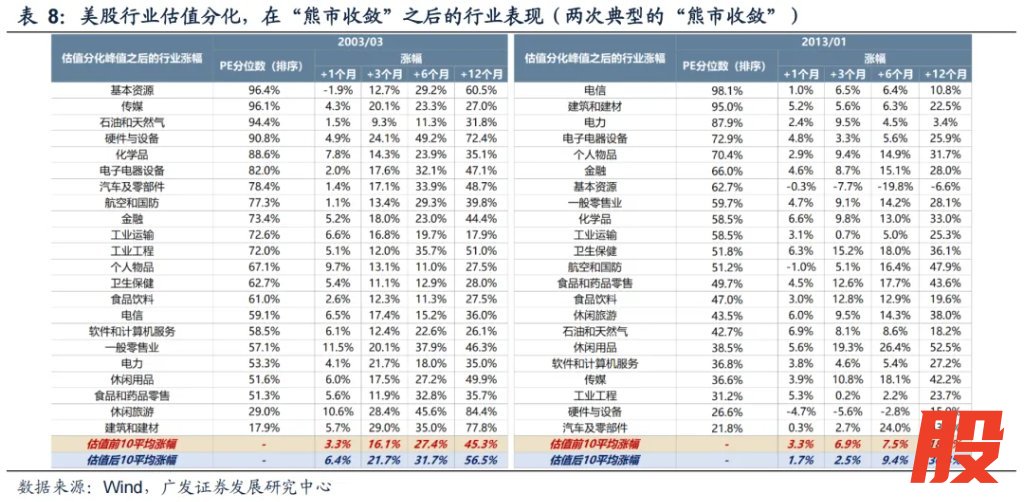 而在 “熊市收敛”中,高估值的行业,则将大幅跑输低估值行业,因为盈利的高增长已经被中断。