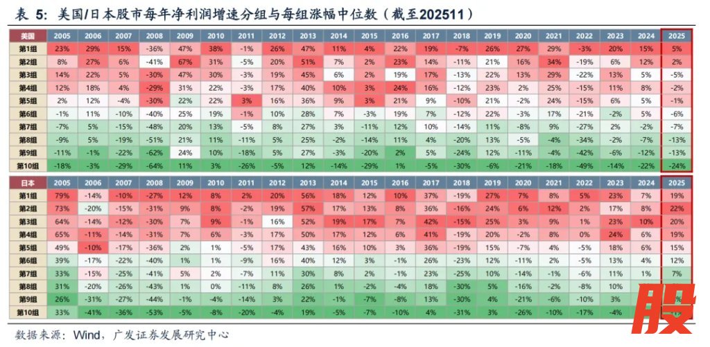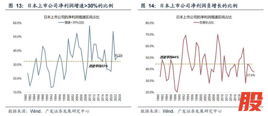 日本的盈利结构相对好些,当前(截至202511)日本上市公司净利润增速>30%的比例为35.5%、负增长的比例达到37.6%,均略好于历史平均水平。