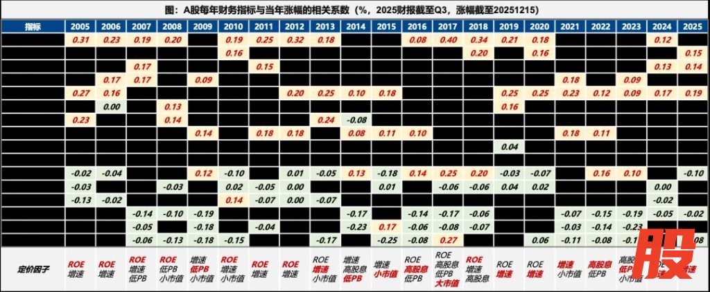 2025年,A股的景气定价更加极致,且具有排他性。(1)以往年份,整体上看,最有效的财务指标是:ROE、净利润/营收增速、PB、股息率;(2)各类定价因子会出现明显的轮动,但每一年,通常会有两个及以上突出的风格;(3)但2025年,景气因子(增速)的有效性显著强于其他财务因子。