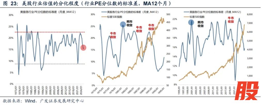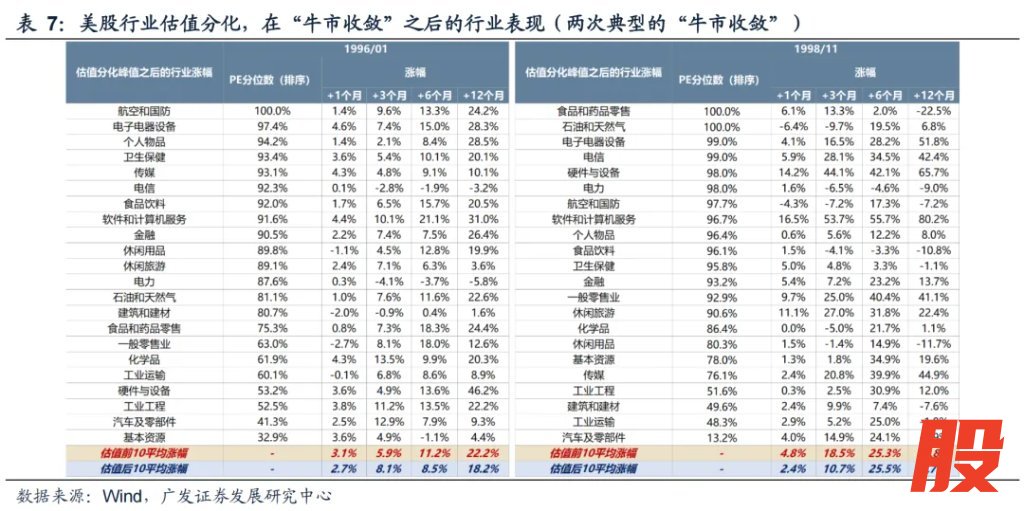 美股行业估值的分化与收敛,也有一些规律性特征: