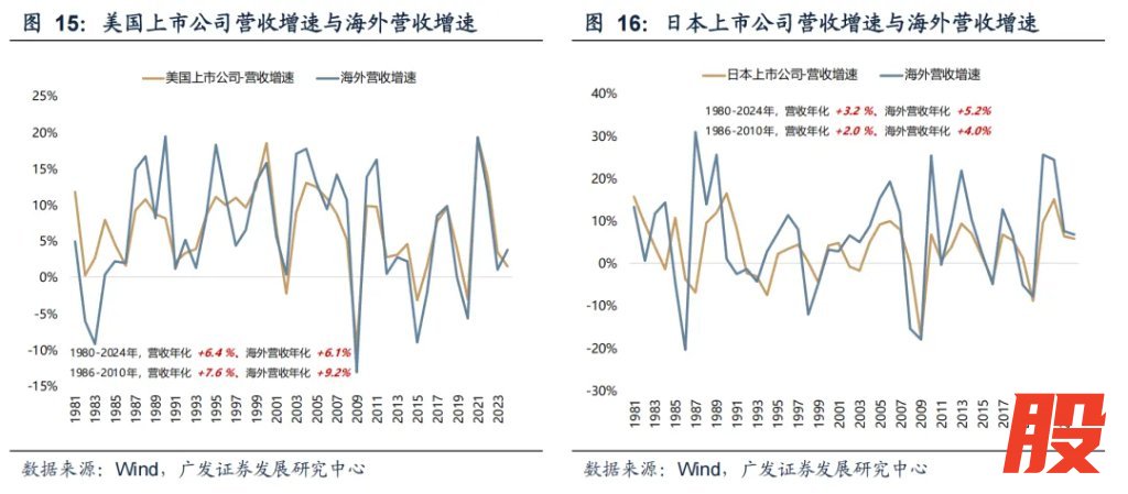 (3)全球化是持续增长的来源。全球化高增长主要集中在80年代中后期到2010年,以及2020年之后的非美国家。1986-2010年,美国/日本/德国/英国/法国上市公司:营收的年化增速分别为 +7.6%/ +2.0%/ +5.4%/ +7.8%/ +7.5%、海外营收的年化增速为+9.2%/ +4.0%/ +6.4%/ +8.7%/ +9.1%。