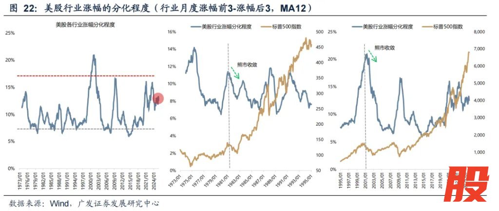 第一,行业分化角度:涨幅离散程度,不是有效的“离场”信号。