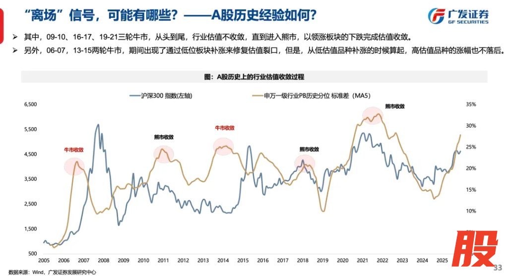 第二,行业估值角度:估值离散程度,也不是有效的“离场”信号。