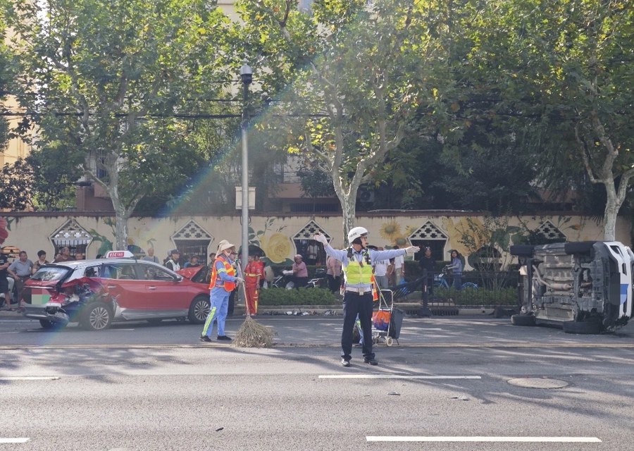 今天(10月17日)上午,有多位市民向新民晚报记者报料称,徐汇区钦州南路近虹漕南路路口,一辆出租车与发生一起两车相撞事故,事故车不同程度受损。