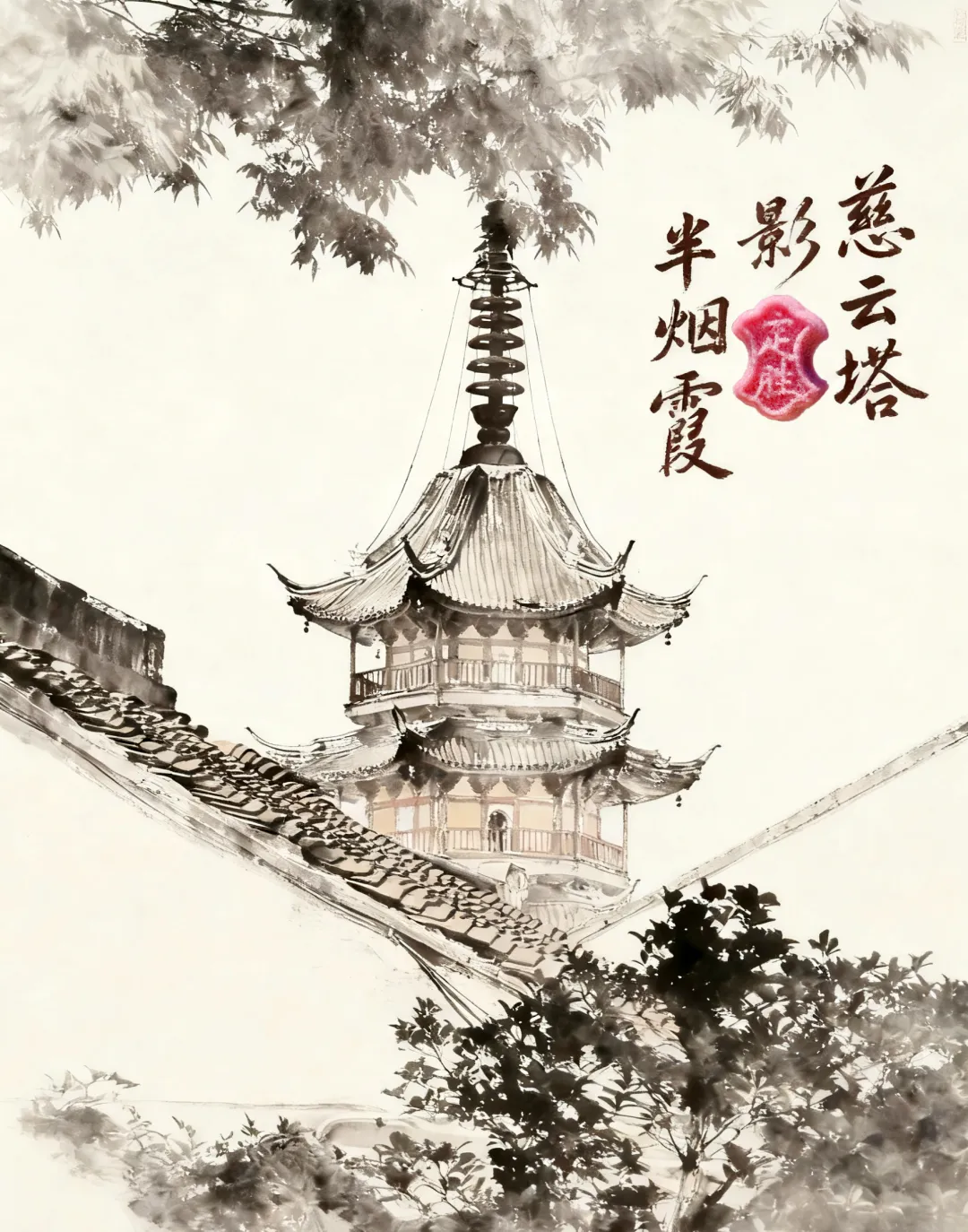 ▲《慈云塔烟霞》吕旦(创意摄影)